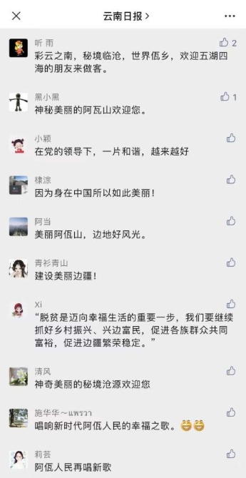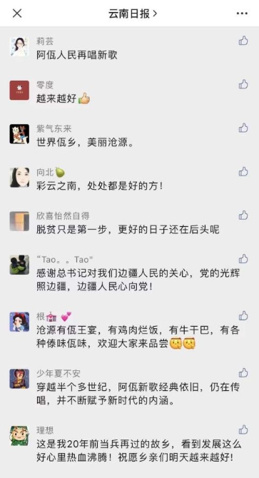 云南網(wǎng)友@小石頭:感謝總書記對(duì)我們邊疆人民的關(guān)心,黨的光輝照邊疆,邊疆人民心向黨!