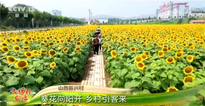 您現(xiàn)在看到的是山西長治振興村的千畝向日葵基地。45萬株向日葵進入盛花期,在陽光的照射下,遍地金黃,好一幅“人在田間走,如在畫中游”的美麗畫卷。村里還將田間小道和田壟設計成向日葵迷宮,增加游客游覽樂趣?;ㄆ诮Y(jié)束后,千畝向日葵預計可為群眾增收200余萬元。收了油葵,緊接著栽上油菜花,又將成為田野的一道亮麗風景,為美麗鄉(xiāng)村加油助力。
