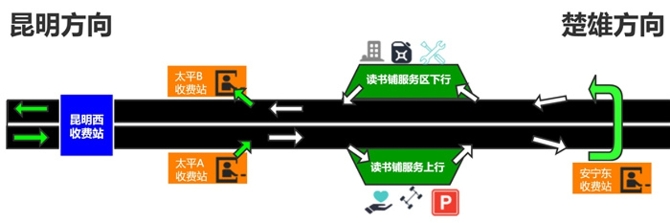 讀書鋪服務(wù)區(qū)實現(xiàn)U轉(zhuǎn)通行后,居住在昆明市區(qū)和太平的司乘人員到讀書鋪服務(wù)區(qū)游玩后,無需再到安寧東收費站下高速即可快速返程。經(jīng)測算,目前昆明市區(qū)、太平去往讀書鋪服務(wù)區(qū)游玩車輛通過U轉(zhuǎn)通道返程,行駛里程可減少7.81km、通行費支出減少3.9元、節(jié)約用時約10分鐘。此舉不僅有效緩解了安寧東收費站通行壓力、減少擁堵,更為廣大駕乘人員節(jié)省了時間成本、燃油成本和通行費用,對節(jié)能降耗和提升通行效率有極大促進作用。