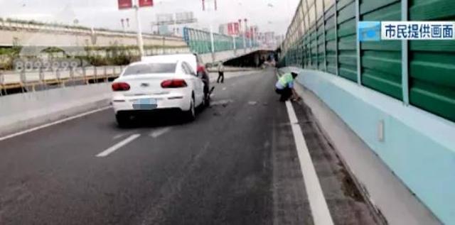 周師傅回憶,路虎車事發(fā)前行駛的路線很不正常,不但忽左忽右行駛,還不時(shí)開上匝道護(hù)欄邊沿。“看樣子他應(yīng)該喝了酒,車牌我沒注意,當(dāng)時(shí)我只注意人了,他跑了以后,我趕緊下車查看被撞的環(huán)衛(wèi)工人,發(fā)現(xiàn)她還會(huì)動(dòng),我就一直在喊她。”