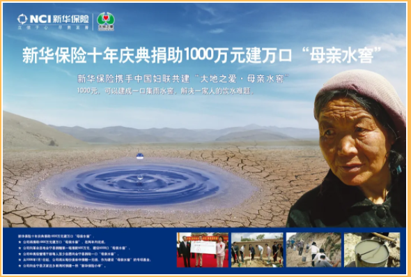■ 新華保險啟動為期三年的“捐建萬口母親水窖愛心工程”,向嚴重缺水的甘肅等西部地區(qū)捐款1000萬元,受益人口5萬多人。