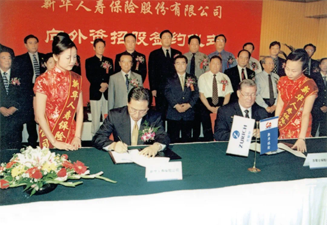 ■新華保險與蘇黎世保險公司、國際金融公司等四家實力強大的外資機構(gòu)正式簽訂招股協(xié)議,成為國內(nèi)首家完成向外資招股的保險公司,實現(xiàn)資本的壯大與國際化。