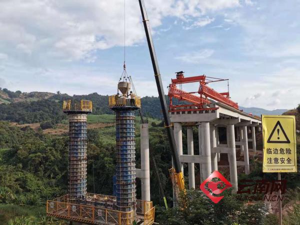 “眼前是大山,腳下是懸崖,在這個(gè)地方行路難,修路更是難上加難,山高坡陡、施工場(chǎng)地狹窄、材料運(yùn)輸困難,橋隧相連,很多工點(diǎn)都無法進(jìn)入施工作業(yè)面?!辨?zhèn)清高速公路第二施工總承包部的經(jīng)理如是說。在橋梁工程施工中,芒崗4號(hào)特大橋是鎮(zhèn)清項(xiàng)目工期控制的關(guān)鍵,大橋左幅全長(zhǎng)1507m,右幅全長(zhǎng)1417m,橋梁靠近山體陡崖,整體地形起伏較大。面對(duì)復(fù)雜的地質(zhì)條件、施工難度大,預(yù)制梁板多的特點(diǎn),建設(shè)指揮部統(tǒng)籌安排施工順序和進(jìn)度目標(biāo),做到有機(jī)銜接,經(jīng)過奮戰(zhàn),實(shí)現(xiàn)了大橋右幅梁板架設(shè)于2021年3月16日完成、左幅于5月5日架通的目標(biāo)。