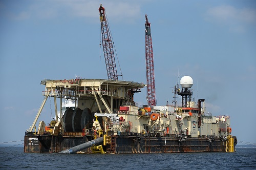 △當(dāng)?shù)貢r(shí)間2018年8月16日,德國盧布明附近的波羅的海,管道船在海里鋪設(shè)“北溪-2”天然氣管道。