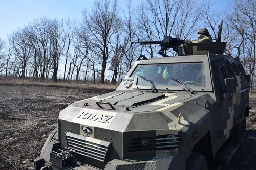△當(dāng)?shù)貢r(shí)間2021年4月,烏克蘭東部地區(qū)頓巴斯,當(dāng)?shù)匚溲b部隊(duì)在邊境巡邏。