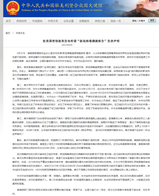 中國駐美國大使館28日在一份聲明中強(qiáng)調(diào),該報(bào)告是由美情報(bào)部門主導(dǎo)杜撰的,毫無科學(xué)性和可信度可言。美方聲稱中方不透明,這完全是為其推動政治化、污名化尋找借口。