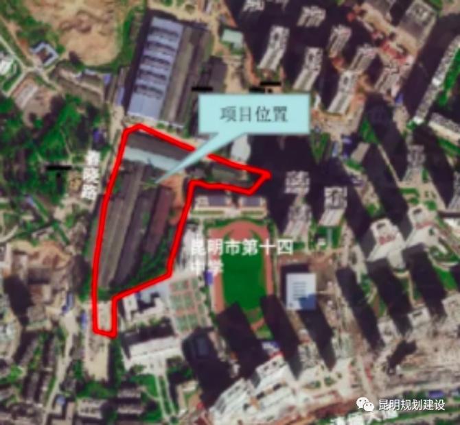 項(xiàng)目地塊位于昆明市五華區(qū)黑林鋪街道。項(xiàng)目南側(cè)及東側(cè)為昆明市第十四中學(xué)校址,西臨春曉路,北臨團(tuán)山路。