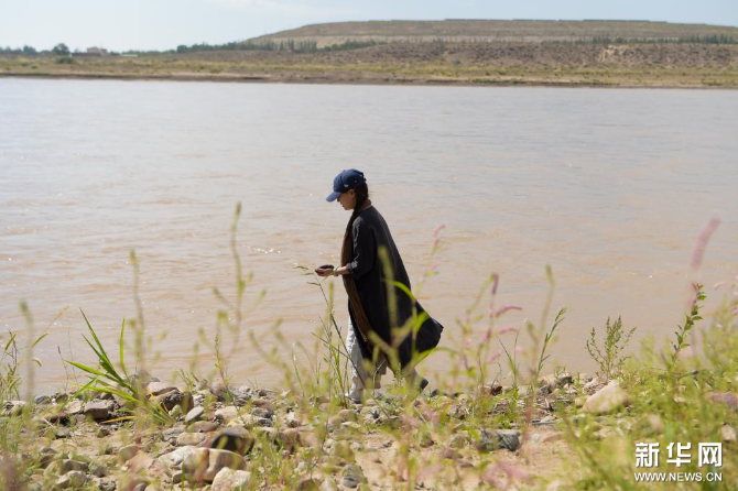 8月26日,在內(nèi)蒙古烏海市海南區(qū)黃河西行客棧附近的黃河岸邊,魯婷尋找合適的黃河石。新華社記者 李志鵬 攝