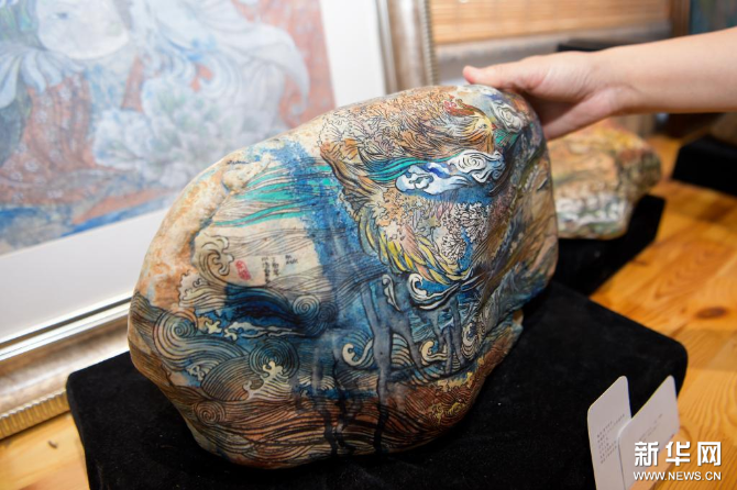 這是8月26日拍攝的魯婷創(chuàng)作的黃河石彩繪作品。新華社記者 李志鵬 攝