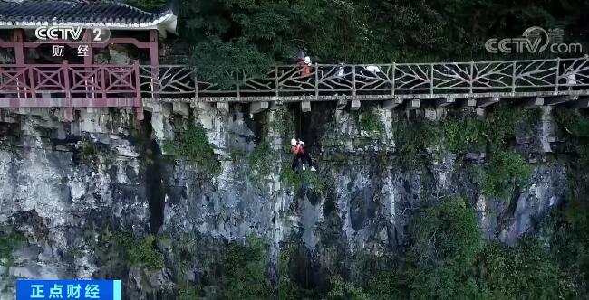 天門(mén)山景區(qū)的許多景點(diǎn)都處于懸崖峭壁之上,部分游客圖方便將垃圾直接丟到懸崖峭壁上,而這些垃圾是普通保潔員沒(méi)有辦法清理的,只能交給穿戴安全裝備的“蜘蛛人”。眼下景區(qū)恢復(fù)開(kāi)放后,景區(qū)的崖壁保潔員分成了兩組,對(duì)整個(gè)景區(qū)的環(huán)山棧道崖壁進(jìn)行一次徹底保潔。