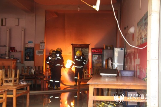 昆明信息港訊 記者勞學(xué)麗 通訊員楊浩羽 “喂,119嗎,我店鋪旁邊的燒烤店起火了,還有好多煙,你們快來(lái)……”