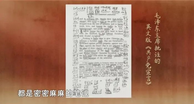 1954年秋天起,他重新開始學(xué)英語,第一個(gè)讀本就是英文版的《共產(chǎn)黨宣言》,從第一頁到最后一頁,都是密密麻麻的閱讀筆記。