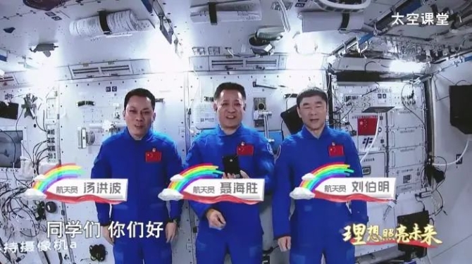 今年《開學(xué)第一課》把課堂搬到了中國空間站,通過“天地連線”的方式,請?zhí)旌秃诵呐撝械娜缓教靻T聶海勝、劉伯明、湯洪波為同學(xué)們帶來一堂別開生面的“太空授課”。