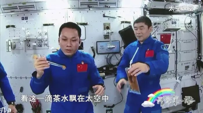 航天員劉伯明用Vlog的形式,帶著同學(xué)們漫游空間站,展示太空廚房、熱風(fēng)裝置、微波加熱裝置、一日三餐、飲水系統(tǒng)、冰箱等設(shè)施。