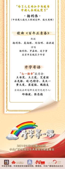 又是一年開學(xué)季,1日晚,2021年《開學(xué)第一課》于20:00播出。今年《開學(xué)第一課》以“理想照亮未來”為主題,用榜樣的力量激勵(lì)著廣大青少年堅(jiān)定理想、發(fā)憤圖強(qiáng)。