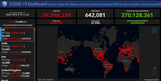 美國約翰斯·霍普金斯大學(xué)實時數(shù)據(jù)顯示,截至北京時間9月2日上午,美國新冠肺炎累計確診病例已超3939萬,眼看又逼近了下一個千萬級心理關(guān)口。