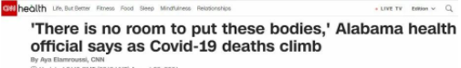 美國有線電視新聞網(wǎng)(CNN):疫情重災(zāi)區(qū)阿拉巴馬州首次使用冷藏車存放遺體。