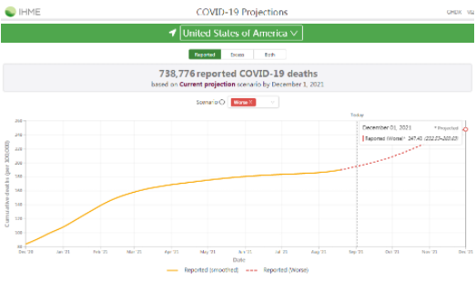 美國華盛頓大學(xué)健康指標(biāo)與評估研究所(IHME)的最新模型預(yù)測,按照目前的感染速度,到今年12月,美國可能將再增10萬病亡人數(shù)。