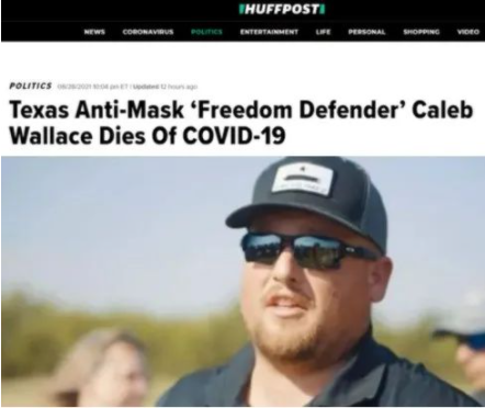 美國《赫芬頓郵報》:得克薩斯州一名組織反口罩抗議的男子在感染新冠肺炎后去世,年僅30歲。