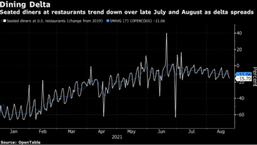 最新數(shù)據(jù)顯示,德爾塔變異株對美國經(jīng)濟(jì)復(fù)蘇產(chǎn)生了顯著消極影響。由于消費者支出受到疫情抑制,企業(yè)推遲恢復(fù)正常運營,8月的美國經(jīng)濟(jì)依舊疲軟。