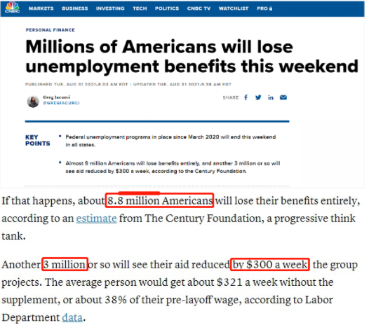 美國消費者新聞與商業(yè)頻道(CNBC):據(jù)估計,如果美國國會不出臺新的救助政策,約有880萬美國人將完全失去他們的福利,另有300萬左右的美國人每周所獲救助金將減少300美元。