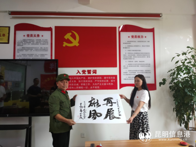 座談會后,退伍老兵向忠俊同志現場即興用拳頭進行書法創(chuàng)作贈予居民,社區(qū)剪紙班的阿姨們通過剪紙表達對英烈的緬懷之情,巾幗志愿隊的志愿者們插出一籃籃漂亮的花籃,志愿者們將剪紙作品和花籃送給今天活動現場的每一位退伍軍人,向他們表達謝意,感謝他們?yōu)閲摇槿嗣褡鞒龅呢暙I。