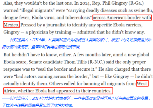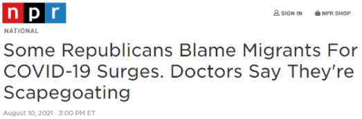 得州州長(zhǎng)格雷格·阿博特7月在接受??怂剐侣劜稍L時(shí)表示,拜登政府“允許感染新冠病毒可能性高的人免費(fèi)進(jìn)入美國(guó),然后在我們的社區(qū)傳播新冠病毒”。但大多數(shù)醫(yī)生和公共衛(wèi)生專家表示,幾乎沒(méi)有證據(jù)支持這一說(shuō)法,移民并不比其他人群病得更嚴(yán)重,政客把重點(diǎn)放在移民身上是轉(zhuǎn)移視線。美國(guó)南加州大學(xué)教授納塔利婭·莫利納在接受NPR采訪時(shí)說(shuō),責(zé)怪移民、實(shí)行“醫(yī)學(xué)種族主義”的做法在美國(guó)有很長(zhǎng)歷史。