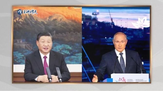 9月3日,國家主席習近平應邀以視頻方式出席第六屆東方經(jīng)濟論壇全會開幕式并致辭。俄羅斯總統(tǒng)普京,出席開幕式。