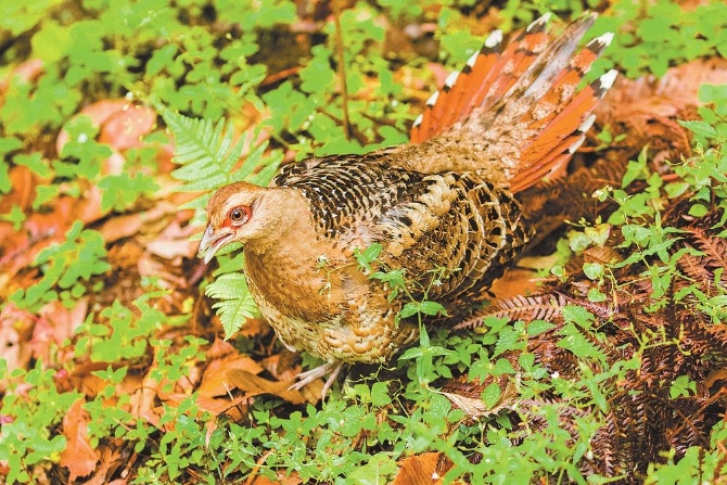 2015年的一個(gè)傍晚,在蒼山西坡的漾濞彝族自治縣蒼山西鎮(zhèn)瓜拉板村村民的指引下,早早踩好點(diǎn)位的張煒悄悄隱蔽在一棵大樹后的窩棚里,等候著前來溪水邊喝水的黑頸長尾雉。兩個(gè)多小時(shí)后,一只雄鳥帶著兩只雌鳥從遠(yuǎn)處慢慢走來,“由于我估計(jì)距離不準(zhǔn)確,它們沒有走到我鏡頭對(duì)準(zhǔn)的點(diǎn)位,剛好差了1米的距離。只要走出一步拿手機(jī)就能拍下珍貴畫面,但由于不想驚動(dòng)它們,我就此錯(cuò)過了。此后,我每天早晚都來蹲守,整整20天,卻再也沒有見到它們的蹤影?!睆垷樃械绞滞锵?。直到2016年,他終于又在蒼山西鎮(zhèn)馬鹿塘村再次聽到黑頸長尾雉的消息。滿心雀躍趕去后,張煒終于拍得一張正在孵鳥期離窩采食的雌鳥。