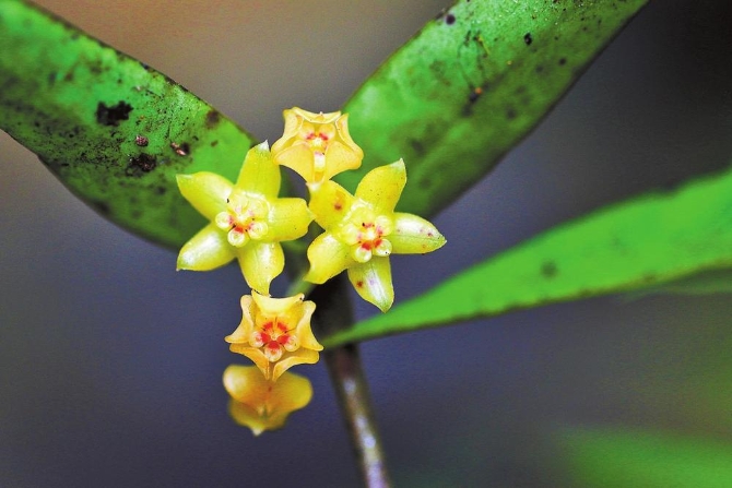 近日,保山市龍陵小黑山省級自然保護區(qū)的技術(shù)人員在野外巡護時,發(fā)現(xiàn)了一種形似五角星的小花。經(jīng)中國科學院西雙版納熱帶植物園研究員譚運洪鑒定,確定為夾竹桃科球蘭屬植物——緬甸球蘭。