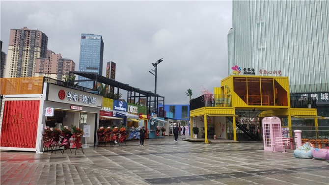 據了解,FUN肆PARK星空慢道商業(yè)街以吃、喝、玩、樂為主體,以盒子+色彩的文創(chuàng)體驗為主題所打造的集裝箱概念,創(chuàng)意十足、魔變新穎,呈現出 “自由空間感”超強的街區(qū)氛圍?,F場充滿視覺沖擊的撞色、炫幻的漸變、線條的延伸把人帶入一個狂想空間,讓人們無盡幻想,隨便找個地方一站,都很適合拍照。