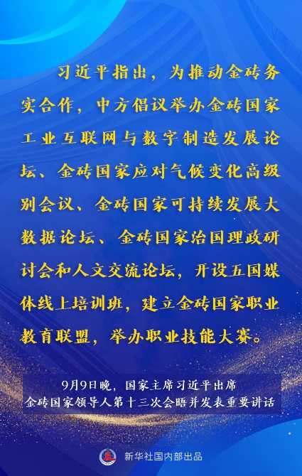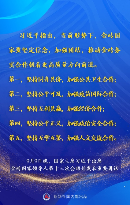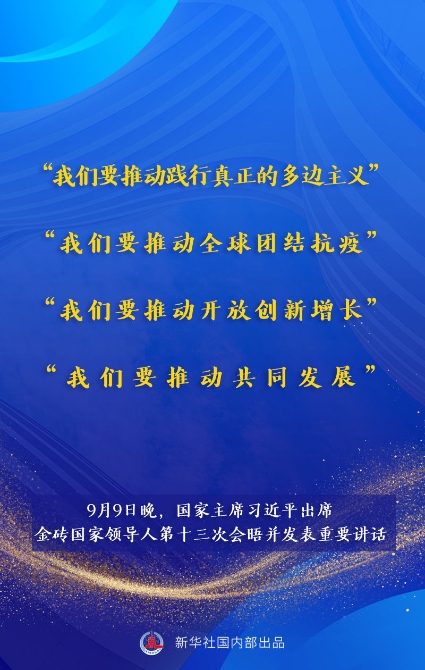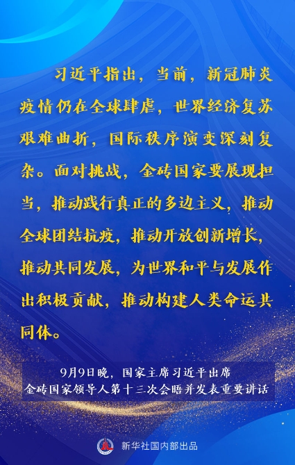 金磚國(guó)家領(lǐng)導(dǎo)人第十三次會(huì)晤9日晚以視頻方式舉行。國(guó)家主席習(xí)近平出席會(huì)晤并發(fā)表題為《攜手金磚合作 應(yīng)對(duì)共同挑戰(zhàn)》的重要講話。講話有哪些主要內(nèi)容,一起來(lái)看。