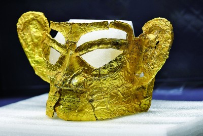 三星堆新出土的完整金面具 新華社記者 王曦?cái)z