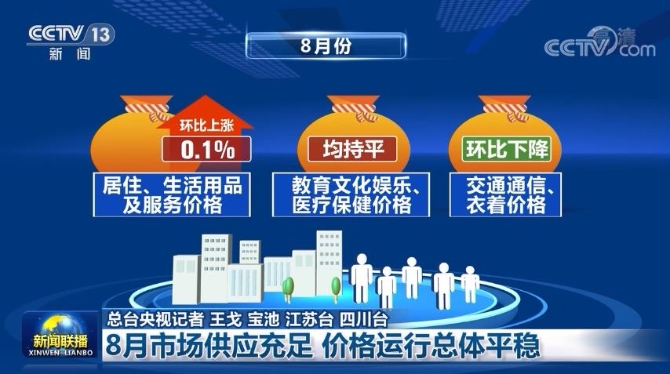 國家統(tǒng)計(jì)局今天(9月9日)公布數(shù)據(jù)顯示,8月份,我國消費(fèi)市場供應(yīng)充足,價(jià)格運(yùn)行總體平穩(wěn),實(shí)現(xiàn)全年物價(jià)調(diào)控目標(biāo)基礎(chǔ)牢靠。