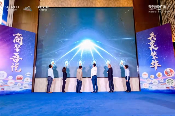 吾悅廣場,開一座火一座,星軼影城領導作為代表商家發(fā)言后,在場的星軼影院、國美電器、利郎、吉布魯、九機網(wǎng)、小米、克羅米星、游戲大魔方、森馬、面包工坊等數(shù)十家商家也現(xiàn)場與招商團隊共同簽字合影,完成意向簽約儀式,與晉寧吾悅廣場共譜未來繁華。