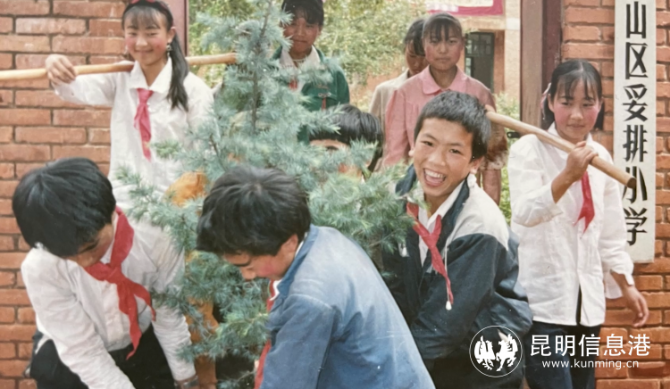 李俊榮老師在妥排小學(xué)任教期間與學(xué)生一同栽樹(shù)。