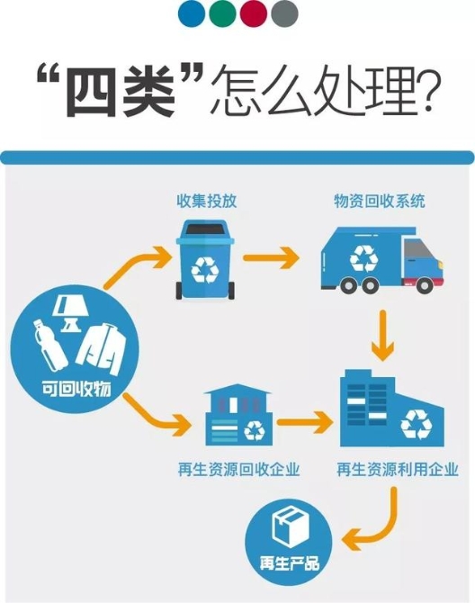 在處理上,已分類的生活垃圾應(yīng)按規(guī)定運往指定的集中處理設(shè)施并做好接收、計量等記錄;可回收物進入再生資源回收渠道;有害垃圾交由具有危險廢物處置資質(zhì)的單位處置;廚余垃圾就近運到小型分散式廚余垃圾處理點處理并單獨計量;其他垃圾就近轉(zhuǎn)運到生活垃圾中轉(zhuǎn)站進行壓縮,最后運送至生活垃圾焚燒發(fā)電廠處理。