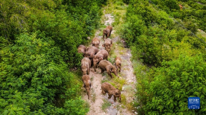 這是8月9日在云南省玉溪市元江縣境內(nèi)拍攝的象群(無人機照片)。新華社記者 胡超 攝