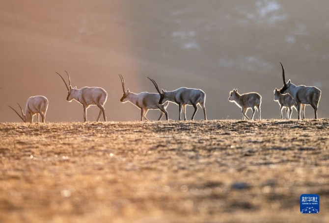 西藏羌塘自然保護區(qū)內(nèi)的藏羚羊(2019年1月31日攝)。新華社記者 普布扎西 攝