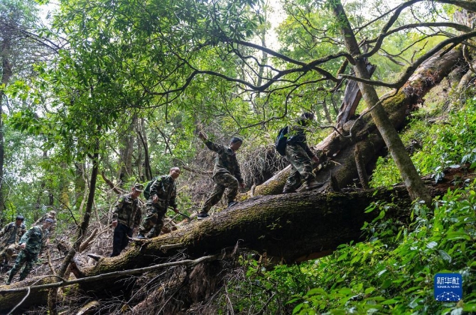 高黎貢山國家級自然保護區(qū)瀘水專職巡護隊在山間巡護(3月12日攝)。新華社記者 陳欣波 攝