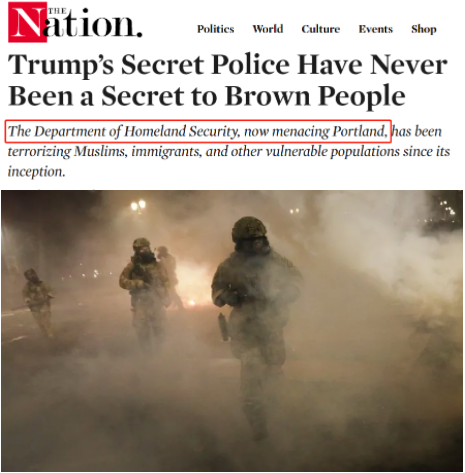 △美國《國家》雜志:威脅波特蘭的國土安全部自成立以來一直在恐嚇穆斯林、移民和其他弱勢群體。