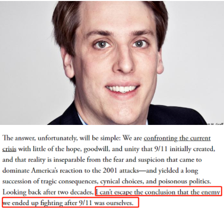 “總有一天,歷史學(xué)家會試圖弄清美國社會為何如此支離破碎,以至于在一場我們完全有能力應(yīng)對的危機(jī)中失手。不幸的是,答案很簡單,9·11之后,我們最終抗擊的敵人就是我們自己?!备窭蛟谒奈恼轮凶詈筮@樣總結(jié)。
