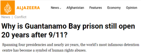 △卡塔爾半島電視臺網(wǎng)站:為什么關(guān)塔那摩監(jiān)獄在“9·11”事件發(fā)生20年后還能存在?
