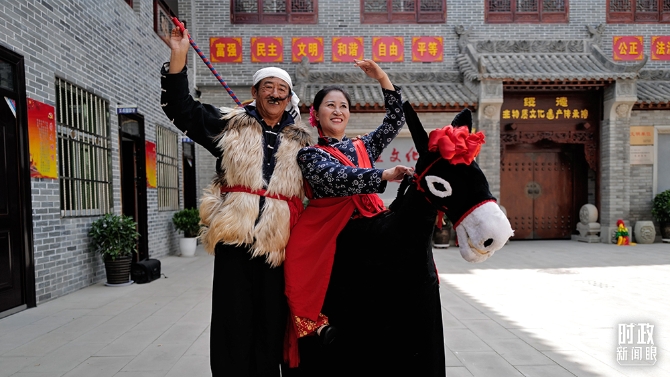綏德縣非遺陳列館,陜北秧歌表演演員。(總臺國廣記者李晉拍攝)