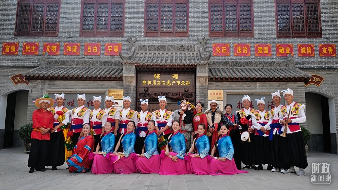 當(dāng)天在非遺陳列館為總書記表演的演員合影。(總臺國廣記者李晉拍攝)