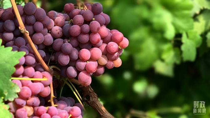 “紅地球”葡萄品種是郝家橋村的脫貧產(chǎn)業(yè)之一。(總臺央視記者馬超拍攝)