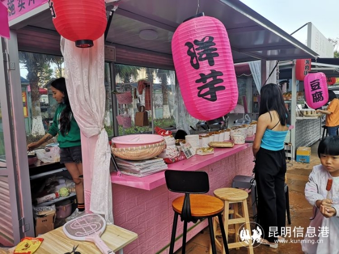 記者實(shí)地走訪了雙城際美食街,從地鐵四號(hào)線廣衛(wèi)站D2口出來(lái),步行二三十米就看到美食街上小餐車排列整齊,公共就餐區(qū)域木桌條凳一字排開有幾分古樸的味道,匯裕豐品牌包子店首先映入眼簾,一側(cè)的上海小混沌和官渡小鍋米線有種“地方小吃打擂臺(tái)”的感覺,再往里走就是“米飯的天地”—秘制牛肉蓋飯、紅燒肉蓋飯、黃燜雞米飯應(yīng)有盡有,最實(shí)惠還是臺(tái)灣烤肉飯,脆皮豬肉、香酥雞肉套飯一份只要14元,還送湯汁!美食街第二排入口就是深受白領(lǐng)喜愛的多恩奶茶,價(jià)格親民,純果汁8元一杯,芒果布丁5元一份,奶茶的價(jià)格從10元至15元不等,店家介紹說(shuō)都是鮮奶定制,“豆腐東施賣洋芋”店用粉色裝扮得格外引人注目,店家的拿手絕活是炸洋芋,來(lái)自昭通的洋芋炸得焦黃鮮美。最里面是燒烤區(qū),頗有名氣的建水燒烤,麻辣鮮香的四川冷串,滋味濃郁的成都鹵味,還有昭通小肉串、石屏燒烤、傣味烤雞等等美食,暮色下都是大快朵頤的食客。
