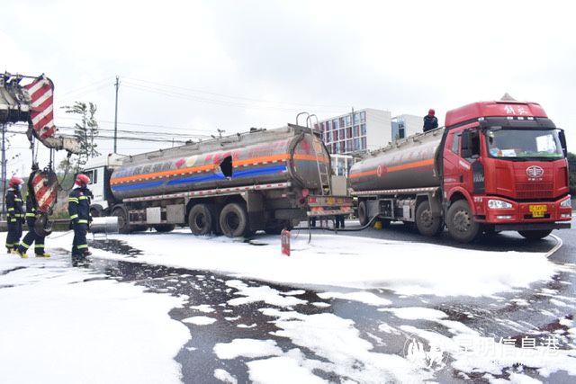 12時(shí)30分,油罐車剩余油料倒灌完畢,事故車輛在一輛消防車的護(hù)送下安全駛離現(xiàn)場(chǎng)。12時(shí)50分,在消防、路政、交警等部門人員共同努力下,險(xiǎn)情成功被排除,在確保安全后救援人員先后撤離現(xiàn)場(chǎng)。