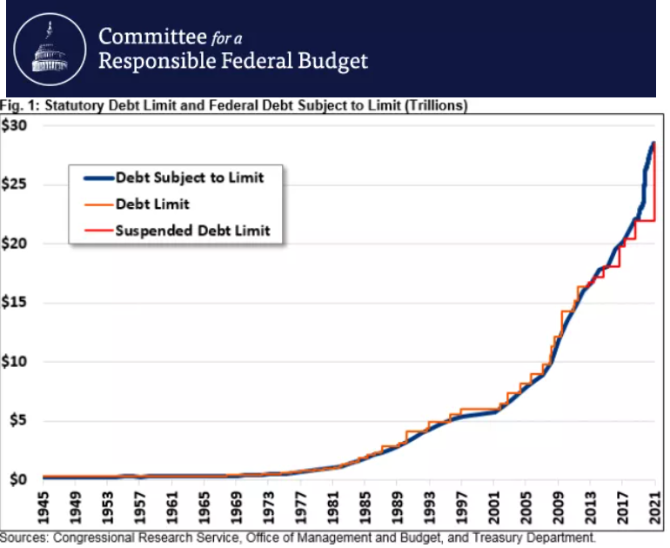 △美國國會預算辦公室官網(wǎng)發(fā)布的美國歷年債務上限圖表