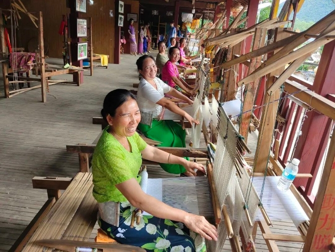 黑惡勢力陰霾消散,人民群眾重新?lián)肀О簿訕窐I(yè)美好生活。圖為云南省保山市大寨村傣族婦女正在合作社學習織布。王龍芹/攝